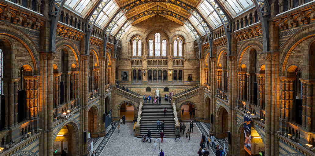 在十月的最后一个周四、周五、周六,伦敦的各大博物馆都会延长对外开放时间,让游客体验到夜间博物馆的魅力。伦敦自然历史博物馆收藏了超过8千万件涵盖了近亿年自然历史发展的动植物标本,化石和矿物标本等。自然历史博物馆不仅是一个博物馆,更是一个提供直接面对面观察动植物的研究中心,在这里参观者可以直接看到已经灭绝的恐龙化石,已经灭绝的渡渡鸟,巨大的红杉树,地震模拟器,在黑暗环境中生长的水晶等。博物馆Hintze大厅展出的长达26米的巨型恐龙化石最近被一蓝鲸的化石取代,成为自然历史博物馆不可错过的一幕。馆内还可以在工作人员的带领下打着手电筒参观,收获别样的参观经历。
