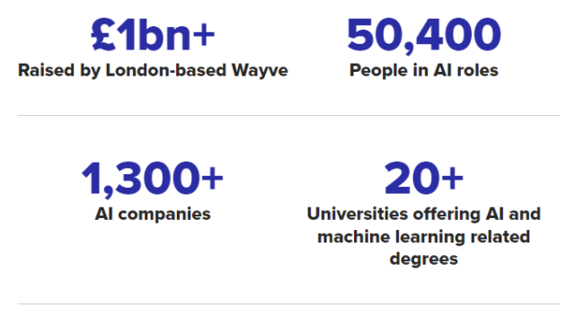 伦敦拥有 1,300 多家 AI 公司、超过 50,400 名 AI 角色人员(数据城)、六个主要机场、多个技术集群和一批早期采用者。这个生态系统拥有 AI 公司可以取得成功的网络、世界级的技术活动、资源、空间和协作性质。